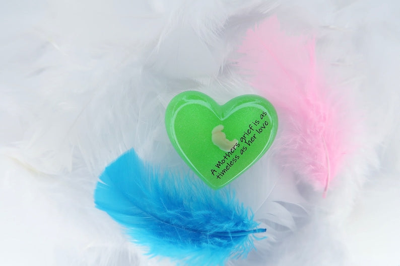 Our dedication to quality ensures that every detail is meticulously attended to, making this keepsake a treasured memento for years to come. Whether you are looking to honor a special moment or give a meaningful gift to a loved one, this resin heart serves as a beautiful reminder of life's precious beginnings.