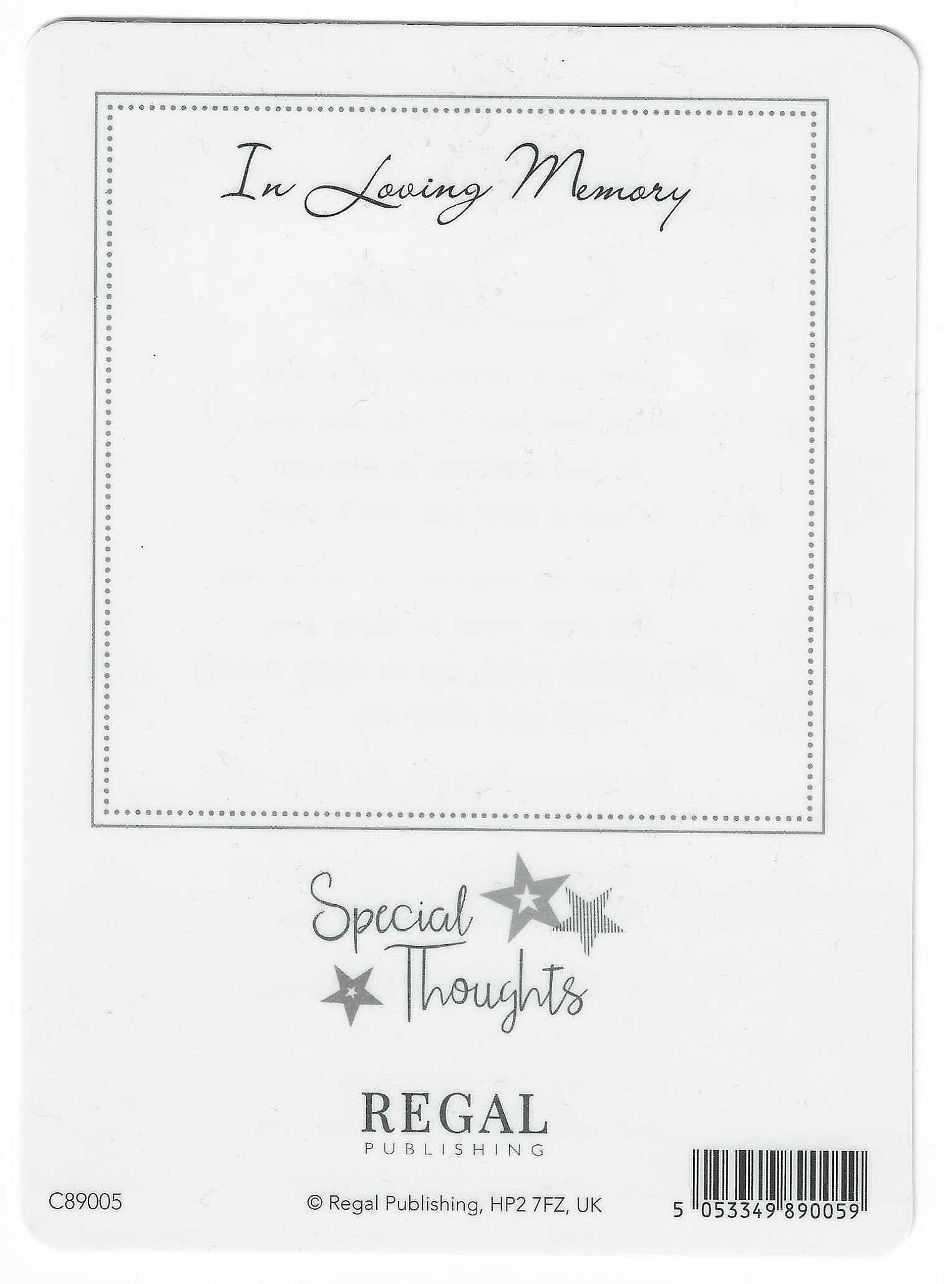 This exquisite memorial card serves as an ideal tribute for adorning a gravesite or memorial space dedicated to cherished individuals who left us prematurely.