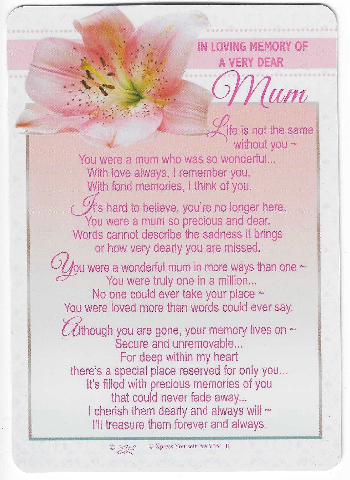 Grave Memorial Card, In Loving Memory Of A Very Dear Mum