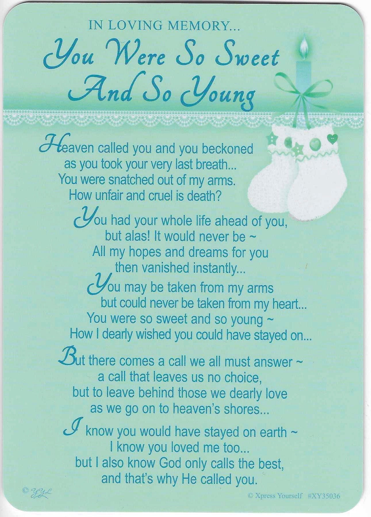 Grave Memorial Card, In Loving Memory, You Were So Sweet And So Young