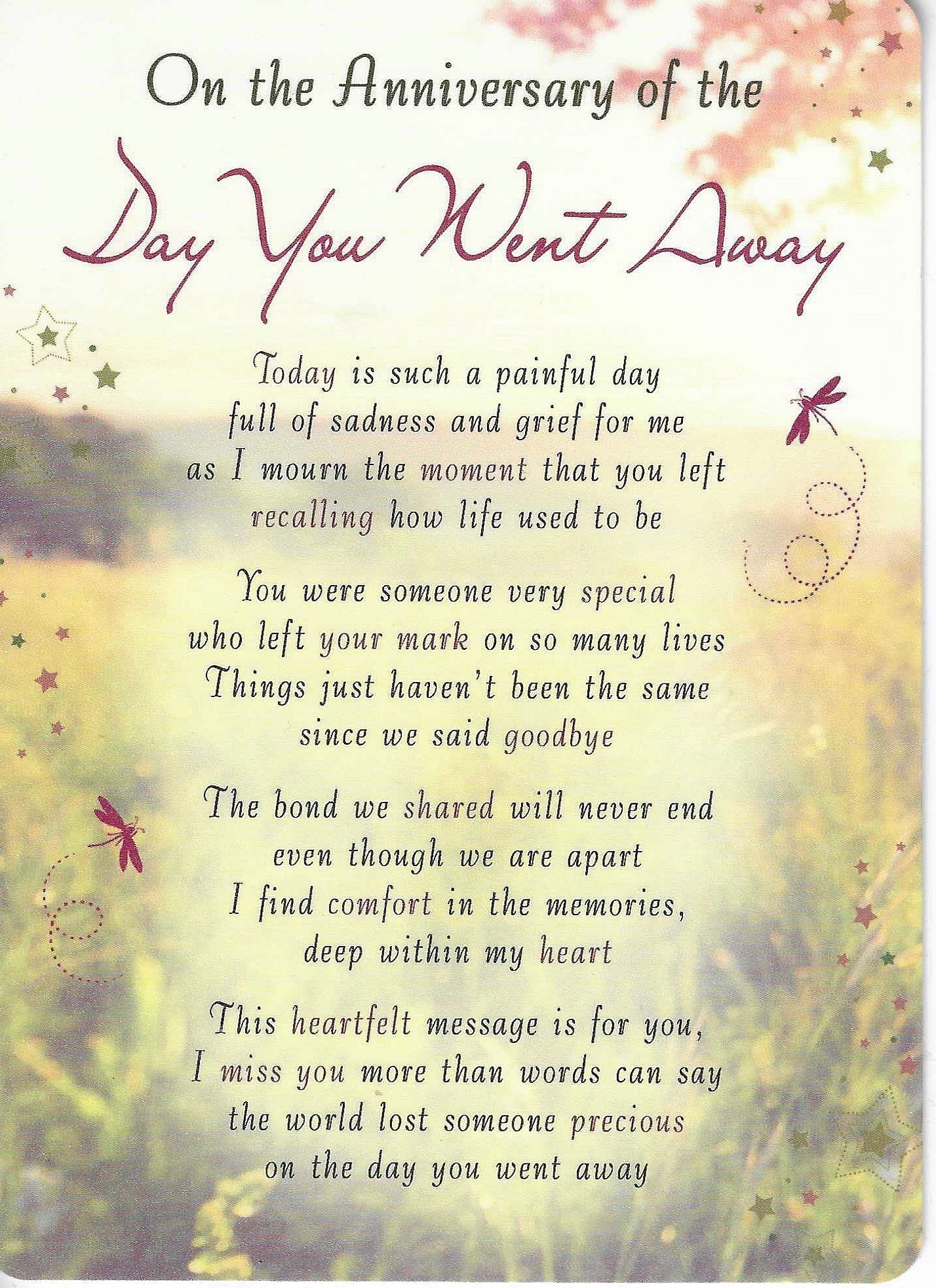 Grave Memorial Card | On the anniversary of the day you went away