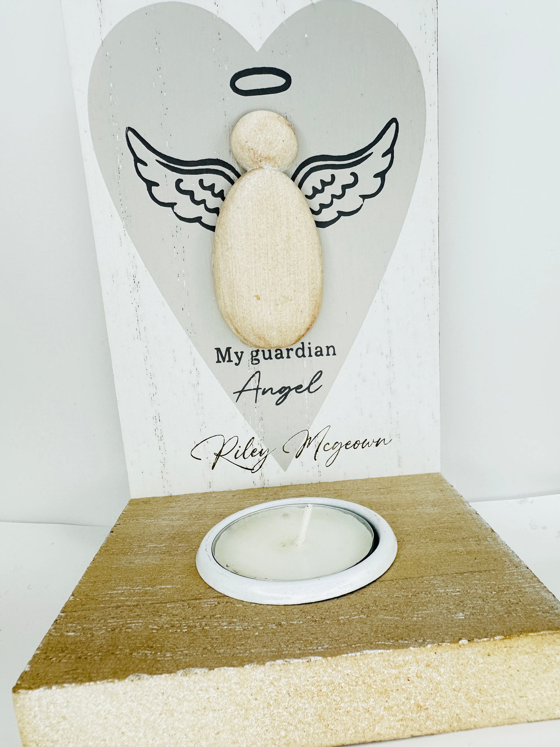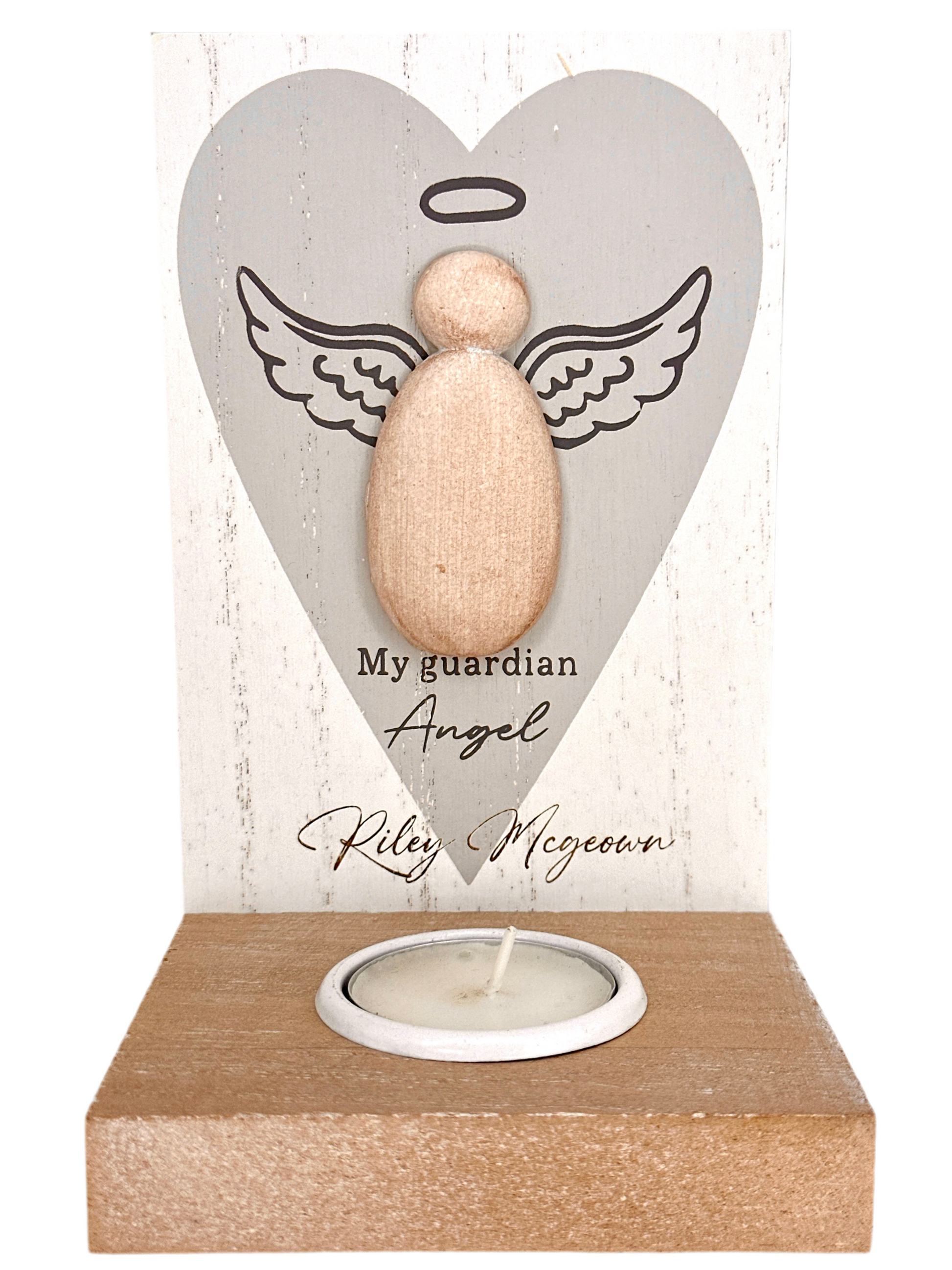 Keep your loved ones close with our Guardian Angel tea light holder. Personalise it with a custom laser engraved name, creating a beautiful memorial keepsake. Let your guardian angel bring warmth and light into your home. A perfect way to remember and honour those who have passed.